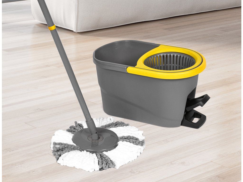 Umýva, stiera prach a schne rýchlo a hlboko. Mop je možné žmýkať bez námahy jednoduchým stlačením pedálu nohou. Ideálne pre všetky typy podláh.