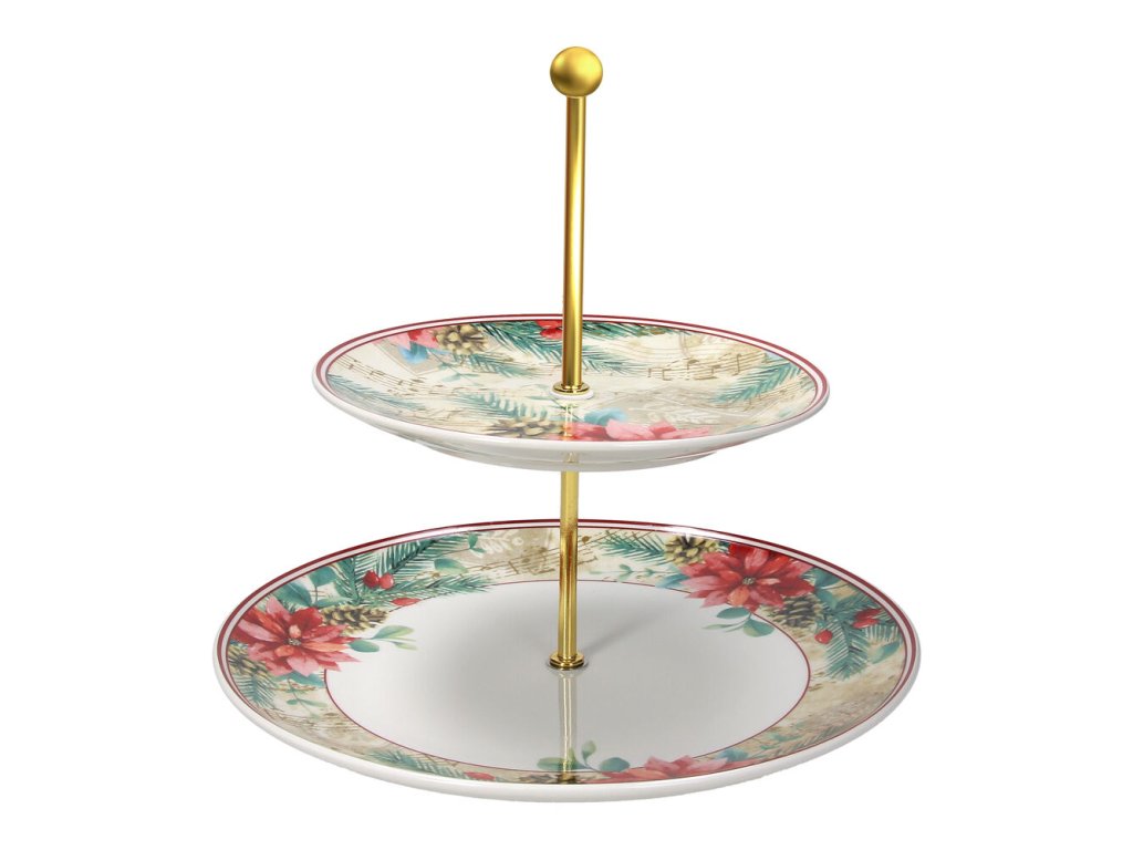 Vianočný porcelánový 2 - poschodový podnos / etažérka Sinfonia v darčekovom balení.