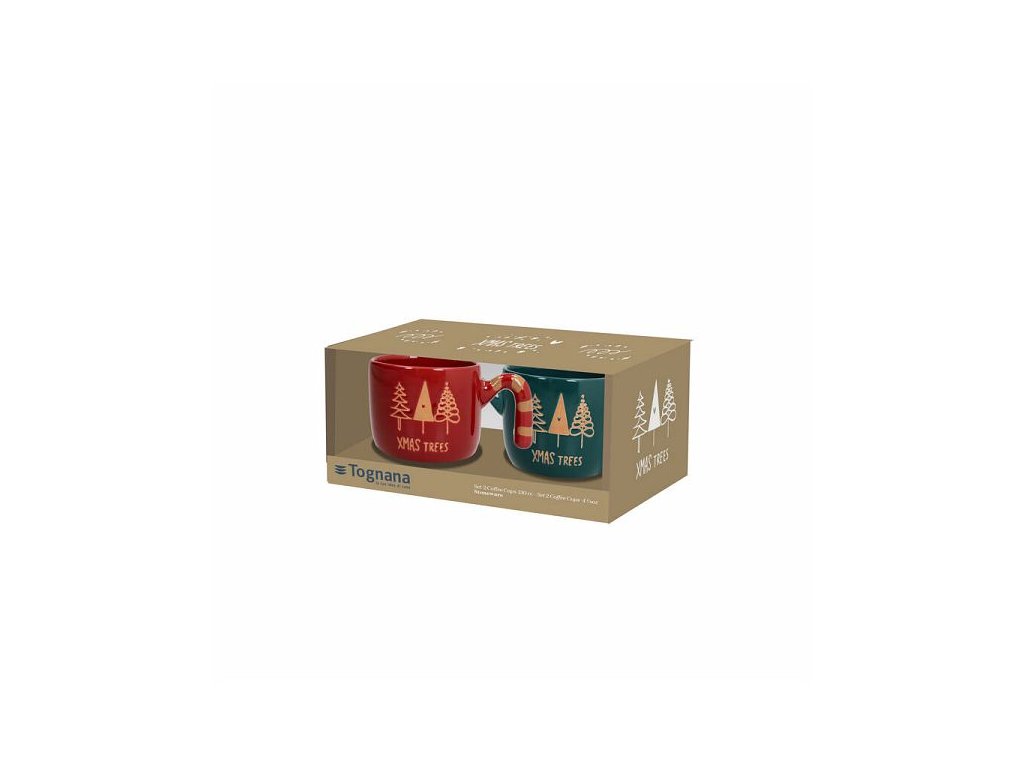 Sada dvoch vianočných šálok 130 ml, 1 zelená + 1 červená, v darčekovom balení