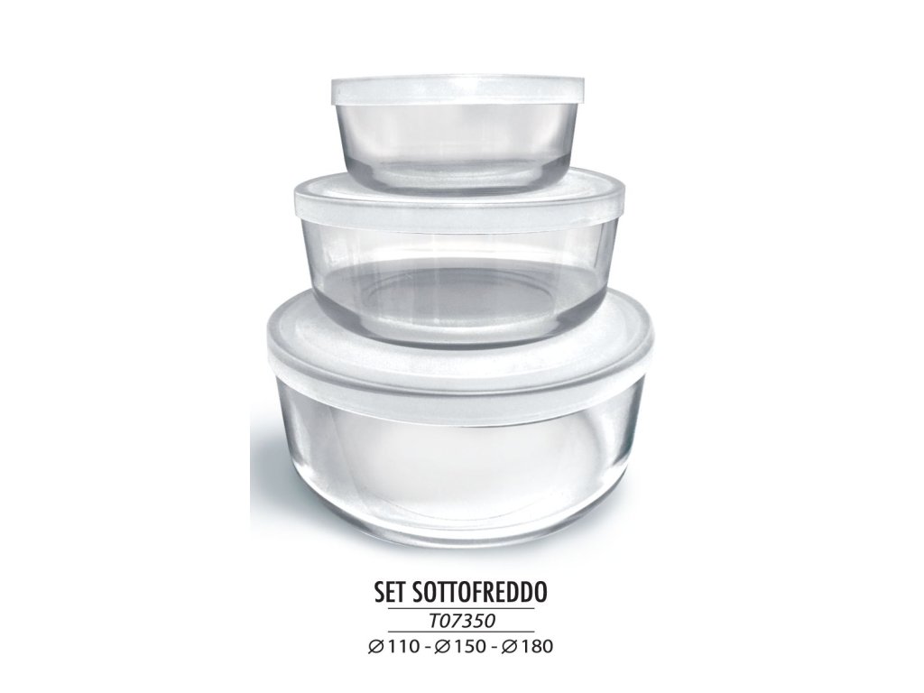Praktické sklenené dózy na uskladňovanie potravín s plastovým tesniacim vrchnákom. Priemery dóz sú: 11 cm, 15 cm a 18 cm.