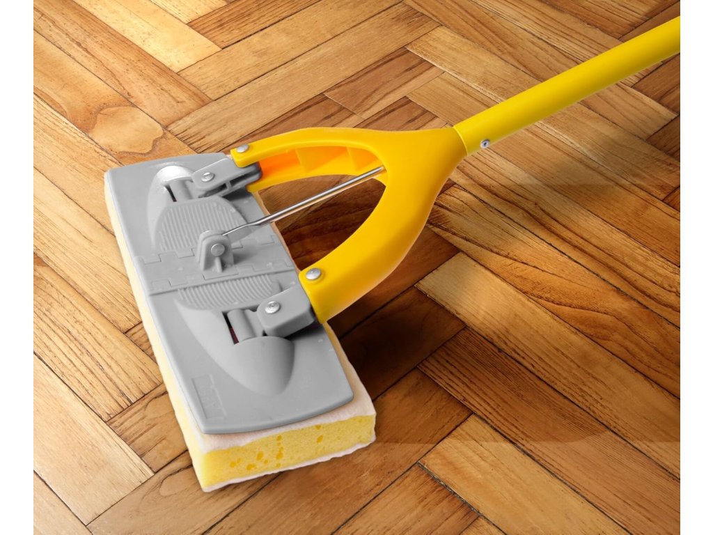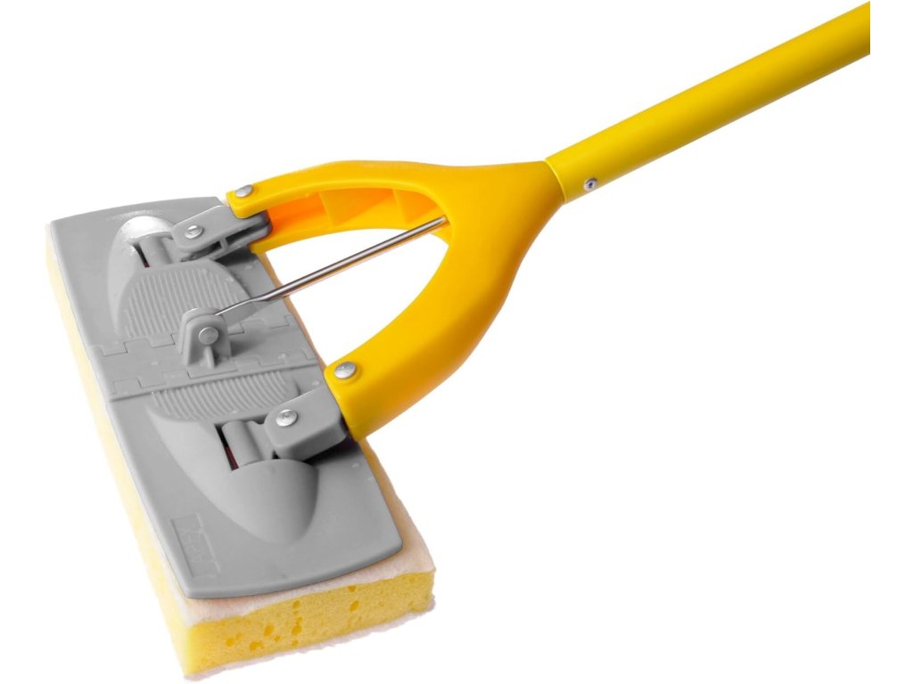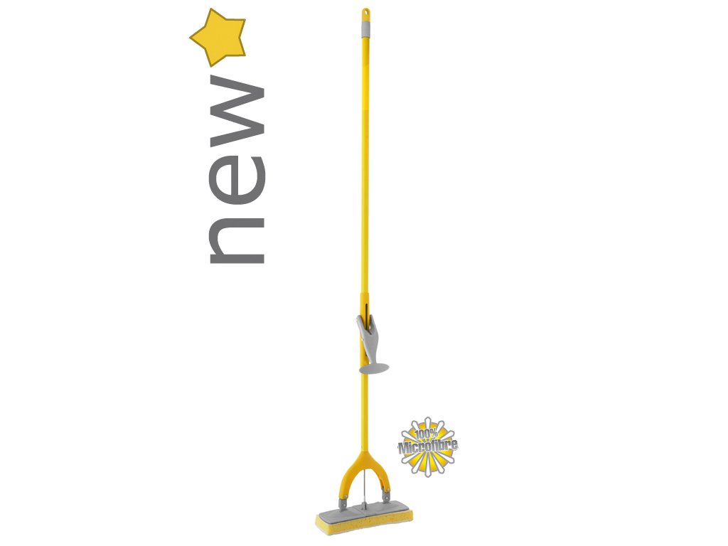 Ultraľahký sklápací špongiový mop s hubkou so 100% mikrovláknom. Pákový mechanizmus vyžmýka vodu a zanechá ruky čisté a suché. Ideálny na všetky typy podláh.