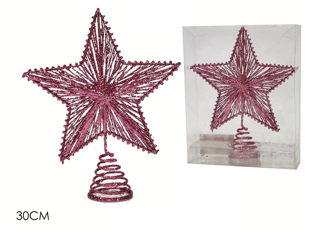 Vianočná ozdoba - špic na stromček ružová hviezda.