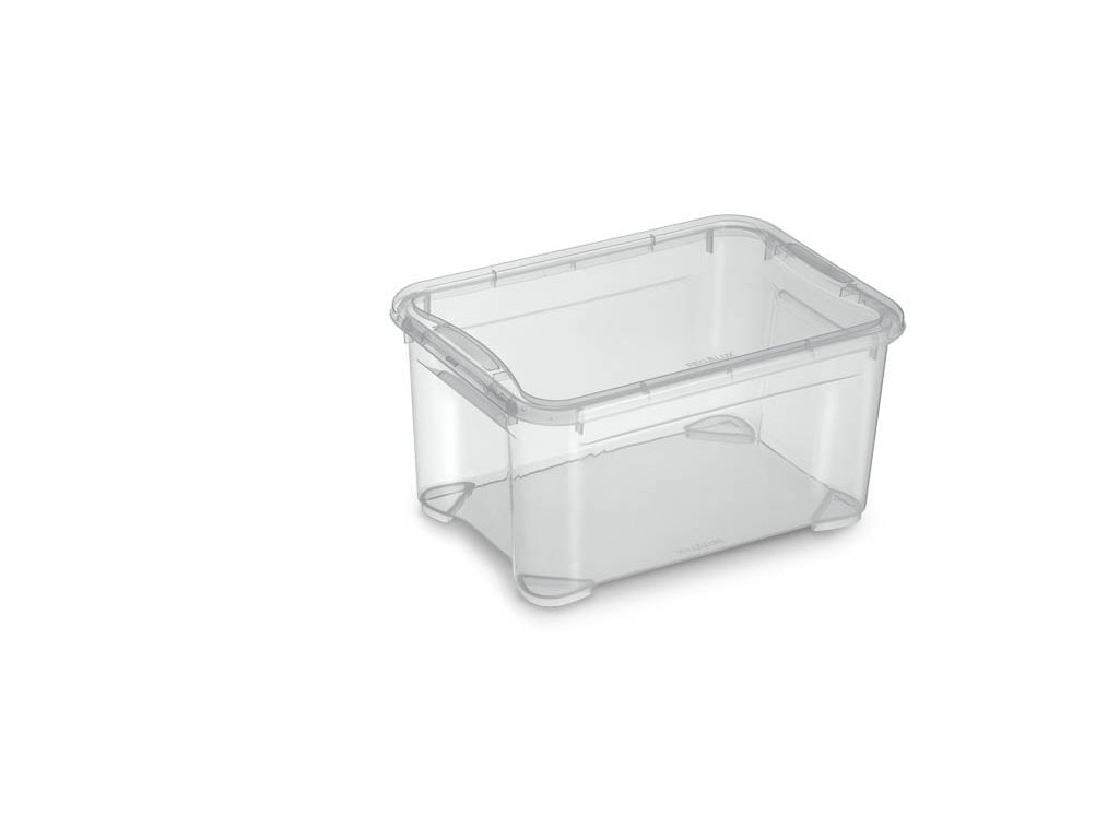 Transparentný box plastový XXS s rozmermi 27 x 19 x h 15 cm a objemom 4 l, so spevnenými rohmi, z resistentného plastu.
